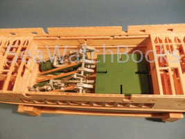 While Gib has built his model using the plank on frame method, the model could also be built using plank on bulkhead, or with lifts for a solid hull. One of the interesting features of this build is Gib’s skillful modeling of the ship’s steam engine.